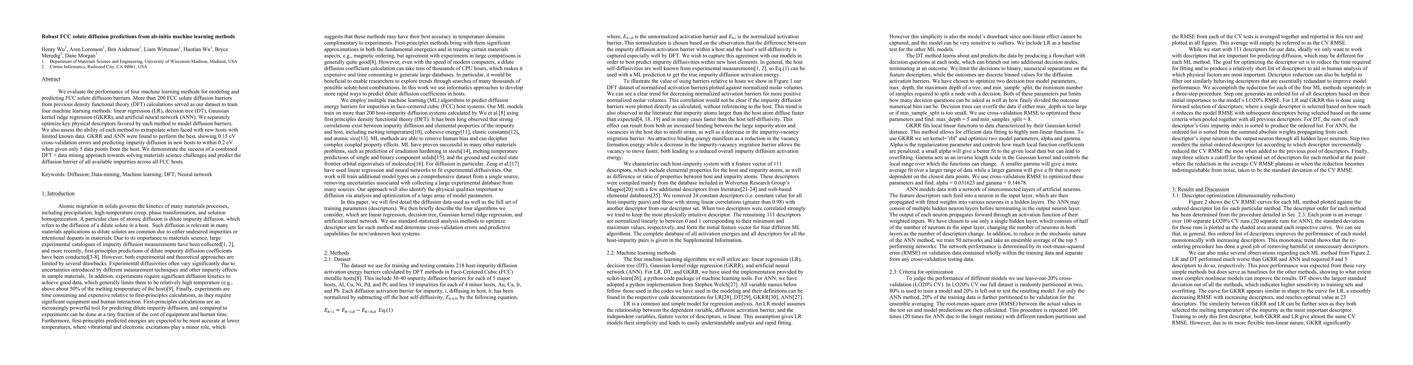 Researchers developed machine learning models to predict solute diffusion barriers in FCC hosts with high accuracy, outperforming traditional methods like linear regression and decision trees. Their approach combines density functional theory calculations with data mining techniques for improved predictions.