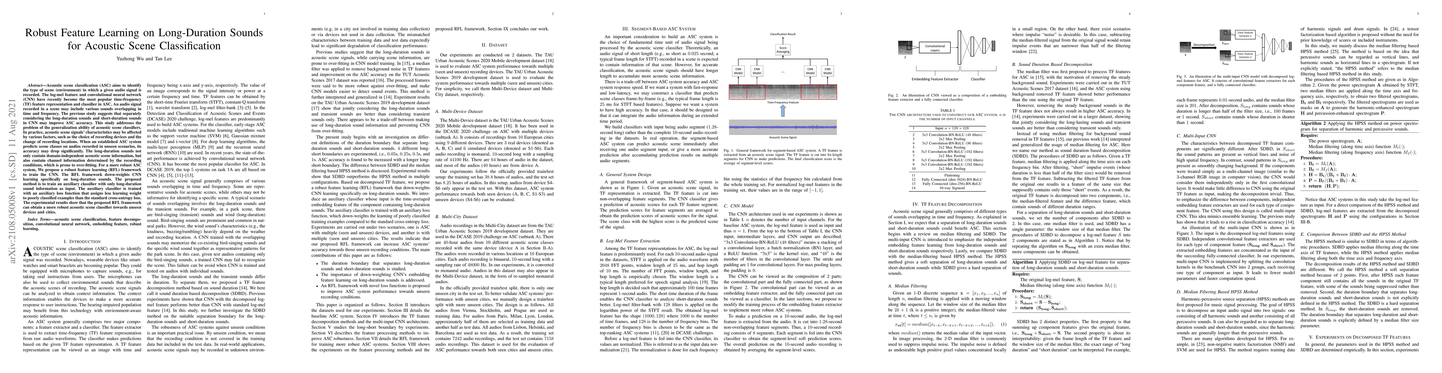 This paper proposes a robust feature learning (RFL) framework to enhance the generalization ability of acoustic scene classifiers. The RFL framework down-weights CNN learning on long-duration sounds to mitigate overfitting, achieving better performance on unseen recording devices and locations.
