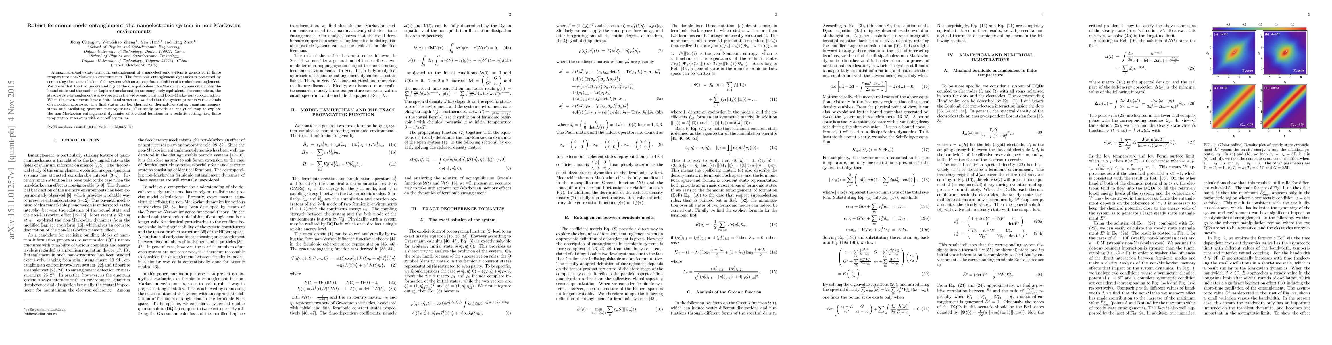This paper investigates the maximal steady-state fermionic entanglement in nanoelectronic systems within non-Markovian environments at finite temperatures. The study reveals various relaxation processes and final states, including thermal and quantum memory states, and proves the equivalence of two dissipationless non-Markovian dynamics models.