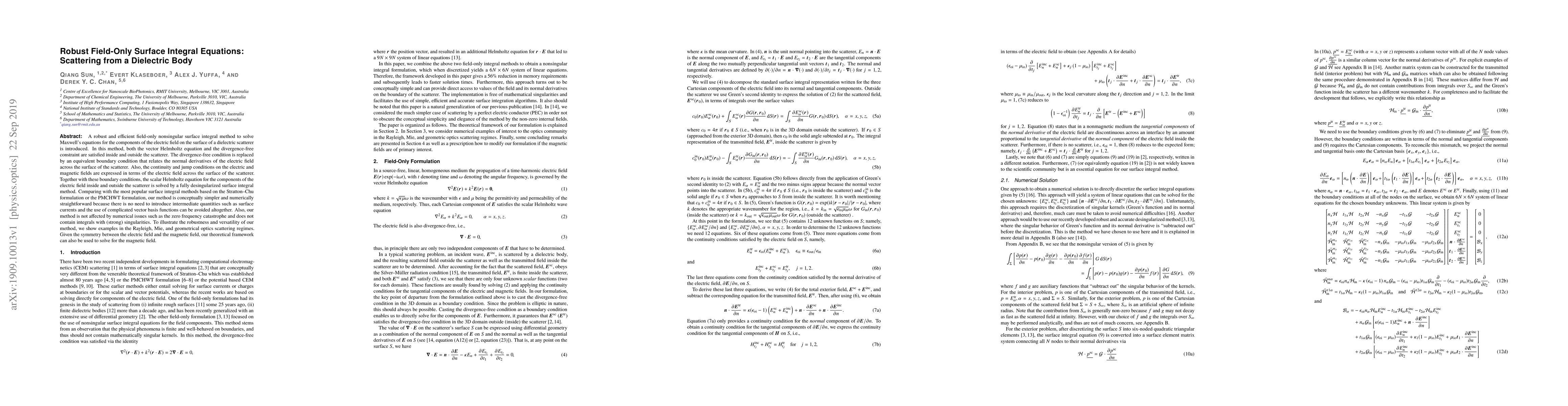 A new field-only surface integral method is introduced to solve Maxwell's equations for electric field components on dielectric scatterers, offering a simpler and more robust approach than existing methods.