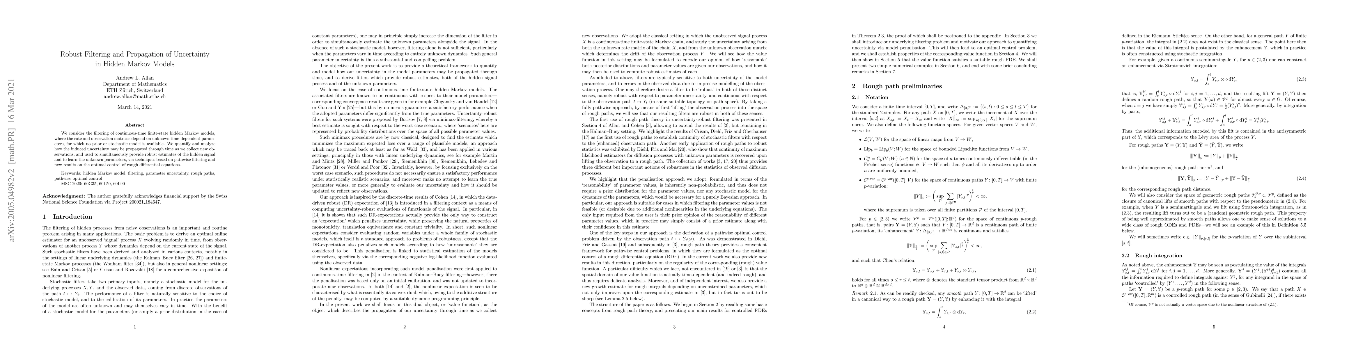 This paper develops robust filtering techniques for continuous-time finite-state hidden Markov models with unknown time-dependent parameters, focusing on propagating uncertainty through time. It uses pathwise filtering and optimal control of rough differential equations to provide robust estimates of hidden signals and learn unknown parameters.