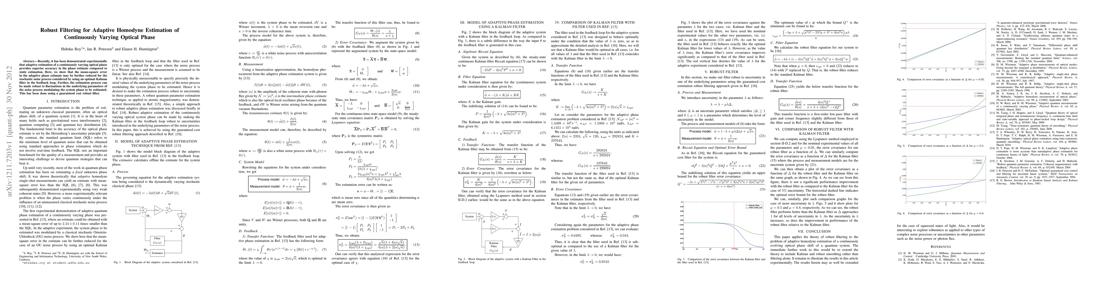 This paper proposes an optimal Kalman filter for adaptive homodyne estimation of a continuously varying optical phase, demonstrating reduced mean-square error compared to static estimation. It further enhances robustness against noise parameter fluctuations using a guaranteed cost robust filter.