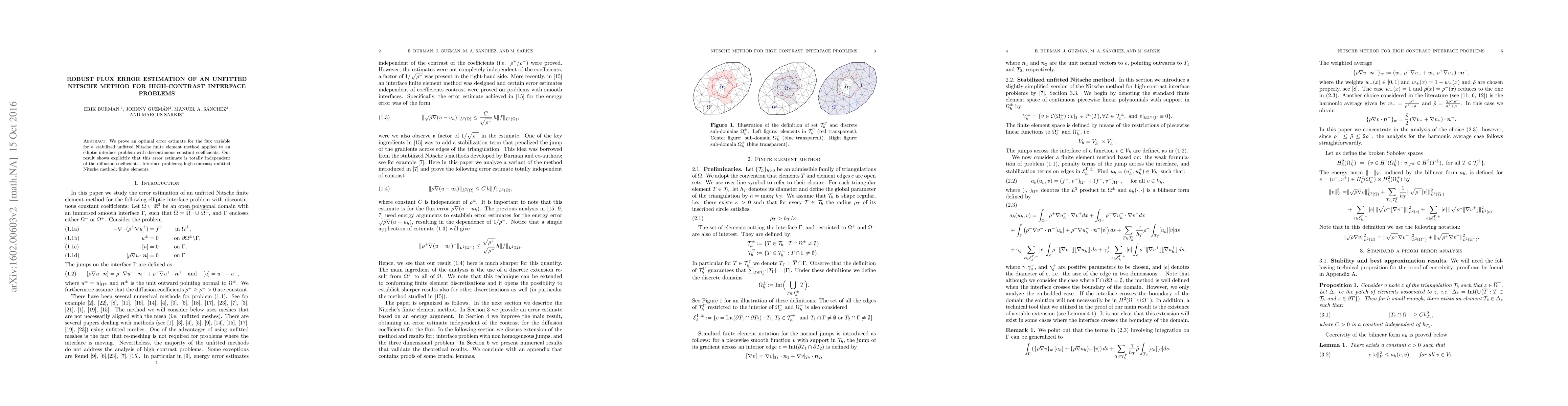 Summary: This paper presents an optimal error estimate for the flux variable in an unfitted Nitsche finite element method for high-contrast interface problems, demonstrating that the error is independent of the diffusion coefficients. The method is shown to be robust for problems with discontinuous constant coefficients.