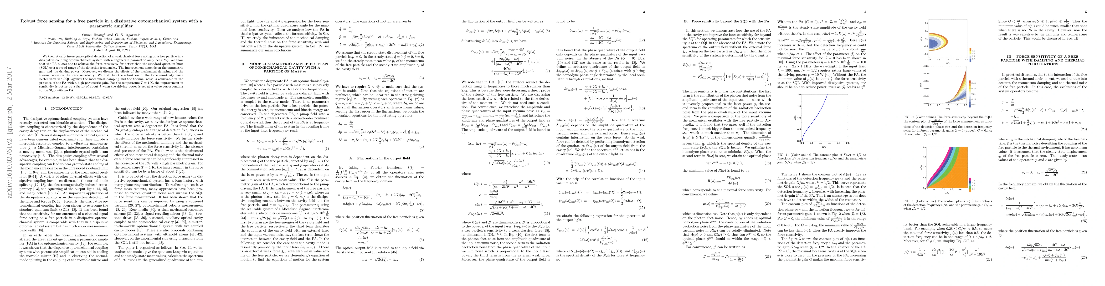 Researchers developed a system that uses a parametric amplifier to detect a weak force on a free particle with improved sensitivity beyond the quantum limit, enhancing its performance against mechanical damping and thermal noise.