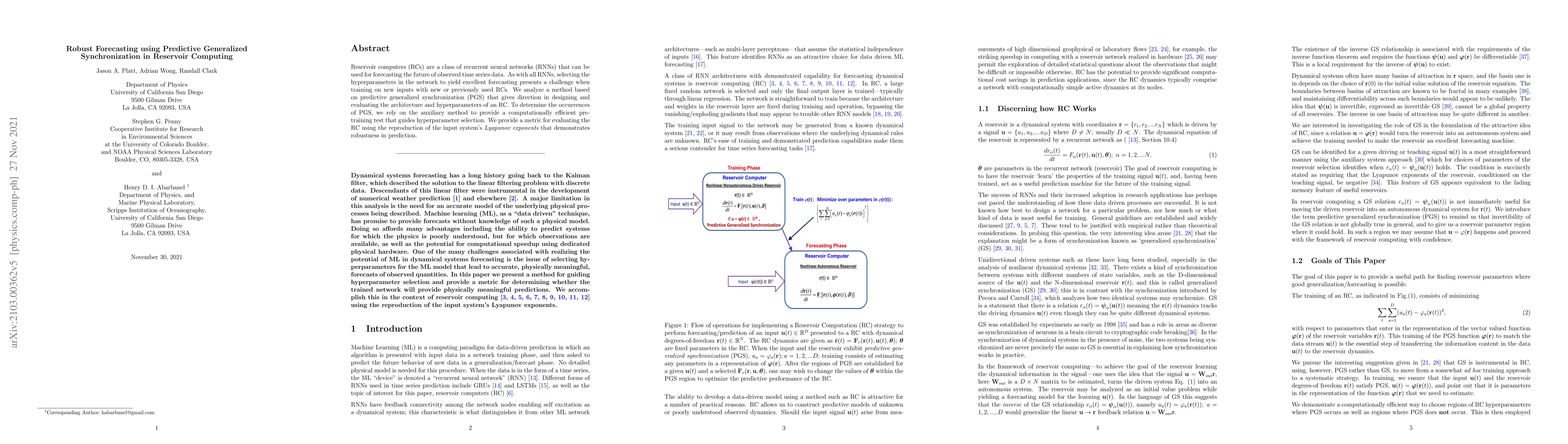 This paper proposes a method using predictive generalized synchronization for robust forecasting in reservoir computing. It introduces an 'auxiliary method' for efficient pre-training and a metric based on Lyapunov exponents to evaluate the robustness of the reservoir computer's predictions.
