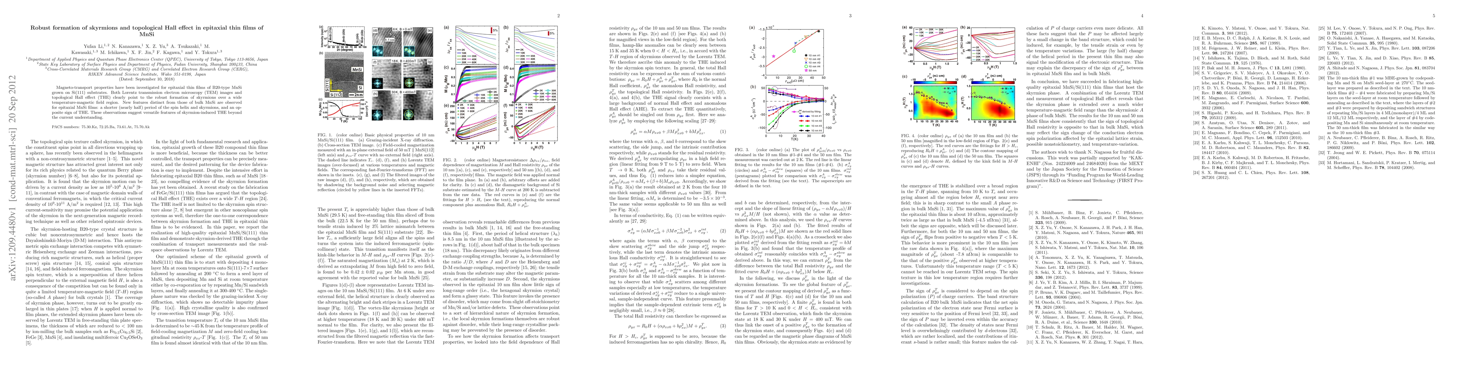 This study investigates the magneto-transport properties of epitaxial MnSi thin films, revealing robust formation of skyrmions and a topological Hall effect over a wide temperature-magnetic field range. The epitaxial films exhibit unique features, including a shorter spin helix period and an opposite sign of the topological Hall effect compared to bulk MnSi.