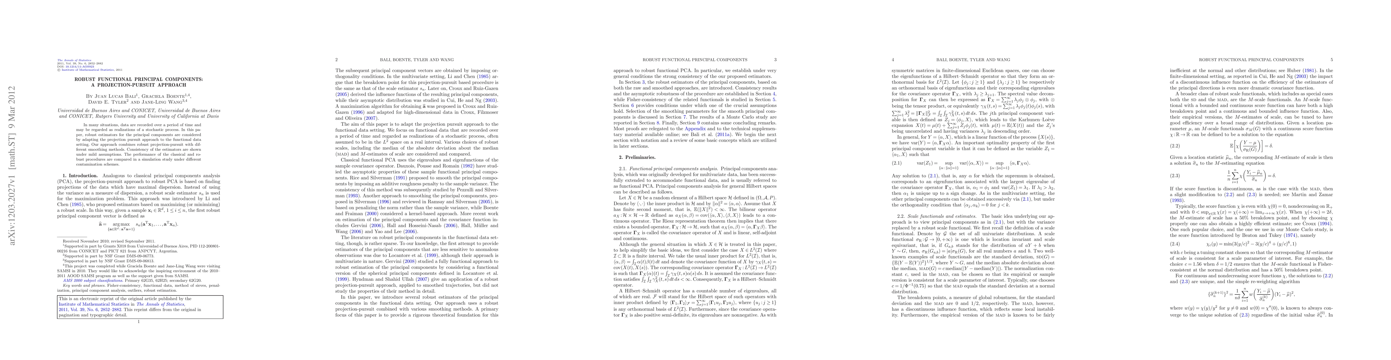 This paper proposes robust estimators for functional principal components using a projection-pursuit approach, combining it with smoothing methods. The consistency of these estimators is demonstrated under mild assumptions, and a simulation study compares their performance against classical methods under various contamination scenarios.