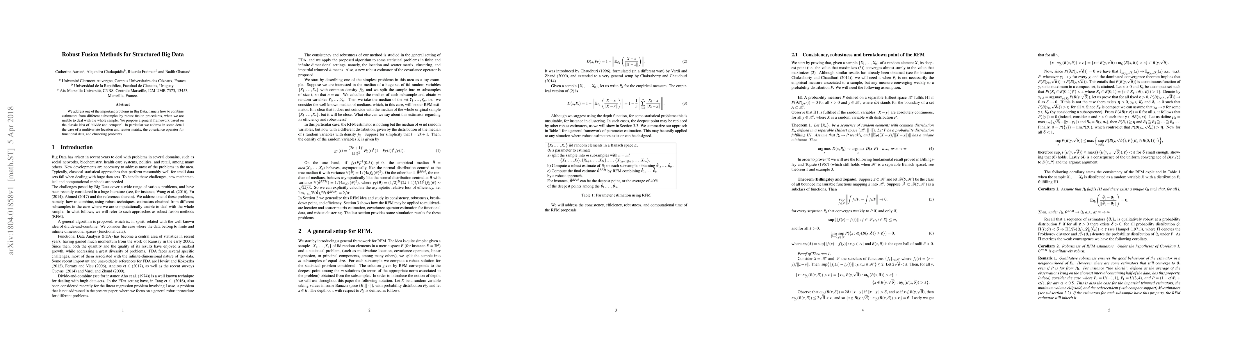 We address one of the important problems in Big Data, namely how to combine estimators from different subsamples by robust fusion procedures, when we are unable to deal with the whole sample. We propose a general framework based on the classic idea of `divide and conquer'. In particular we address in some detail the case of a multivariate location and scatter matrix, the covariance operator for functional data, and clustering problems.