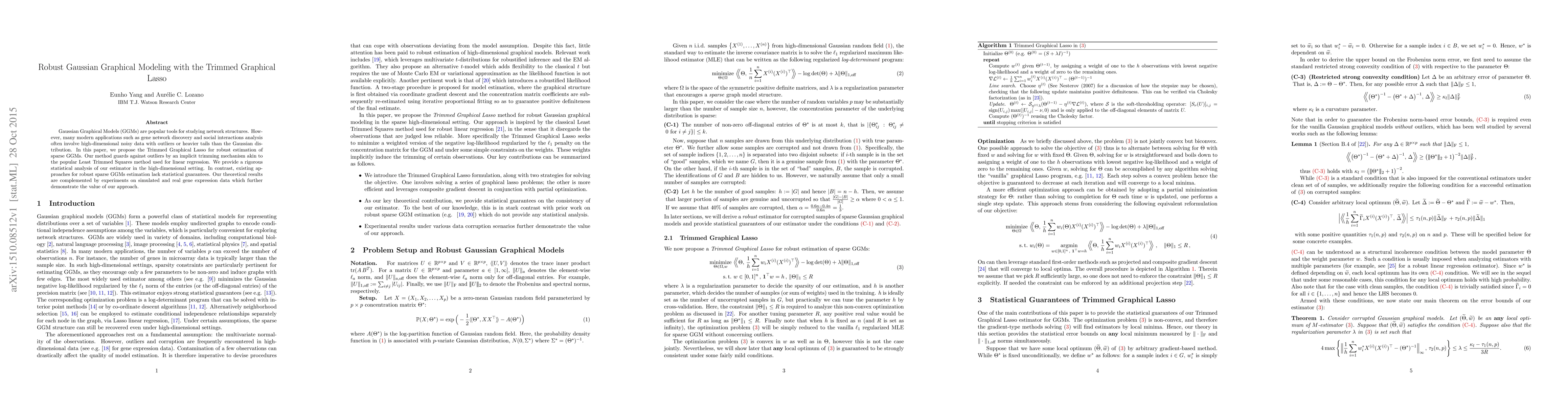 This paper proposes a robust method called Trimmed Graphical Lasso for estimating sparse Gaussian Graphical Models (GGMs) in high-dimensional noisy data, providing statistical guarantees against outliers and heavy-tailed distributions. The method is supported by rigorous theoretical analysis and validated through experiments on gene expression data.