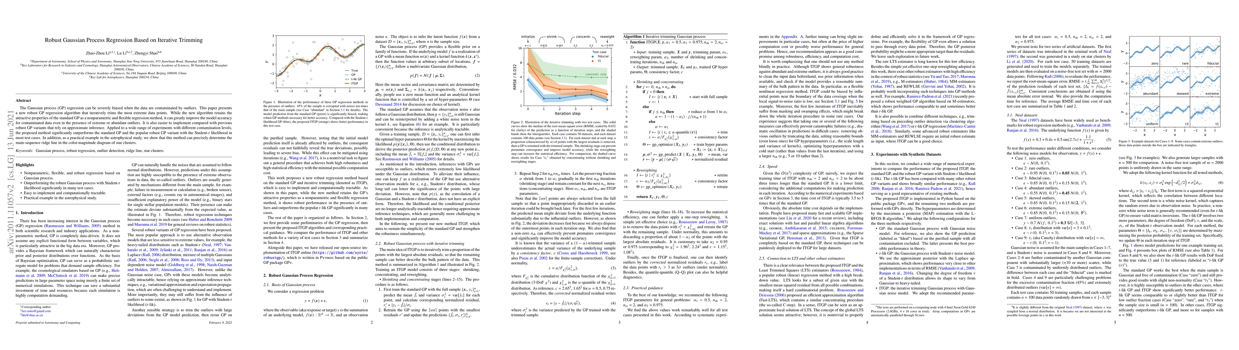 This paper introduces a robust Gaussian process regression algorithm that iteratively trims outliers to improve accuracy, maintaining the flexibility of standard GPs while outperforming traditional methods in contaminated datasets. The method is shown to be effective in astrophysical applications, such as determining the main-sequence ridge line in star clusters.
