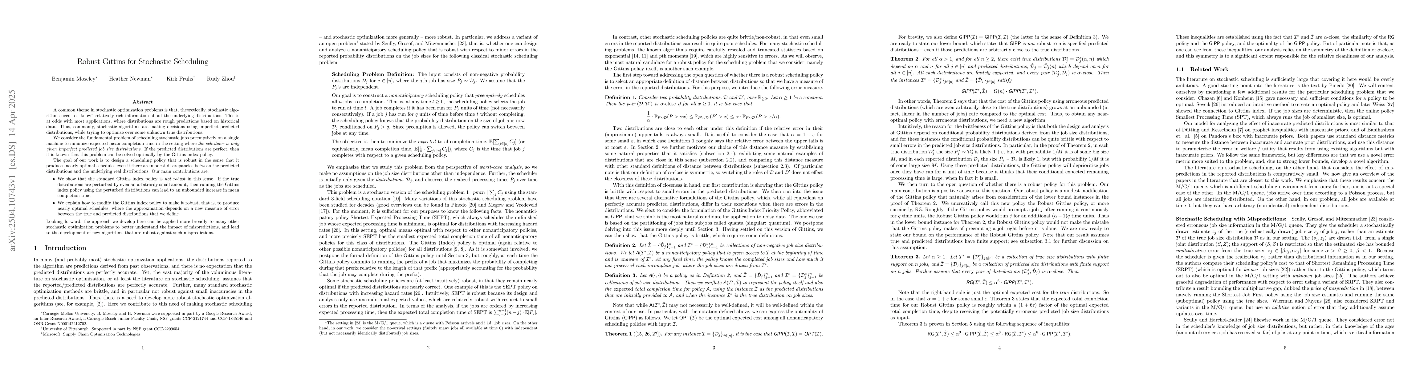 The paper addresses the problem of scheduling stochastic jobs on a single machine, focusing on minimizing expected mean completion time with imperfect predicted job size distributions.