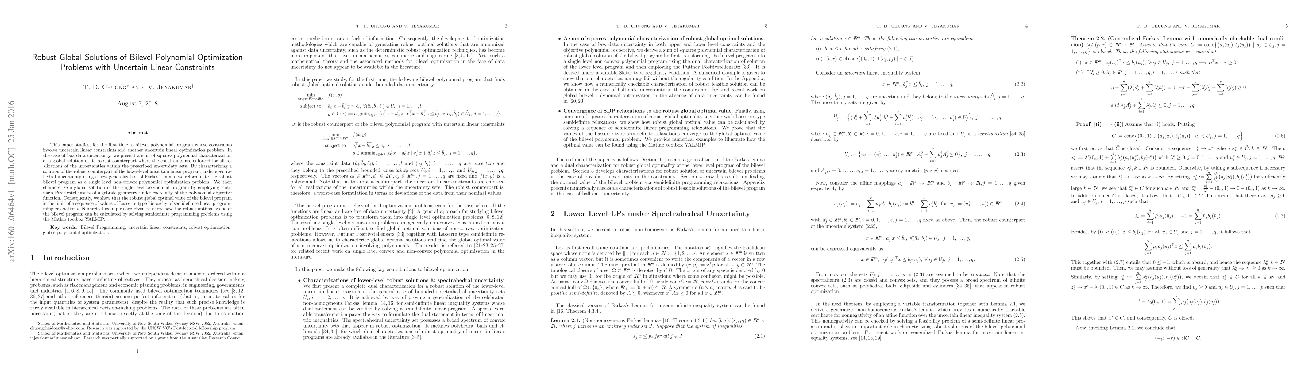 This paper introduces a novel method to solve bilevel polynomial optimization problems with uncertain linear constraints, using sum of squares polynomials and Putinar's Positivstellensatz to characterize robust global solutions. It reformulates the problem as a single-level polynomial optimization and demonstrates its applicability with numerical examples using YALMIP.