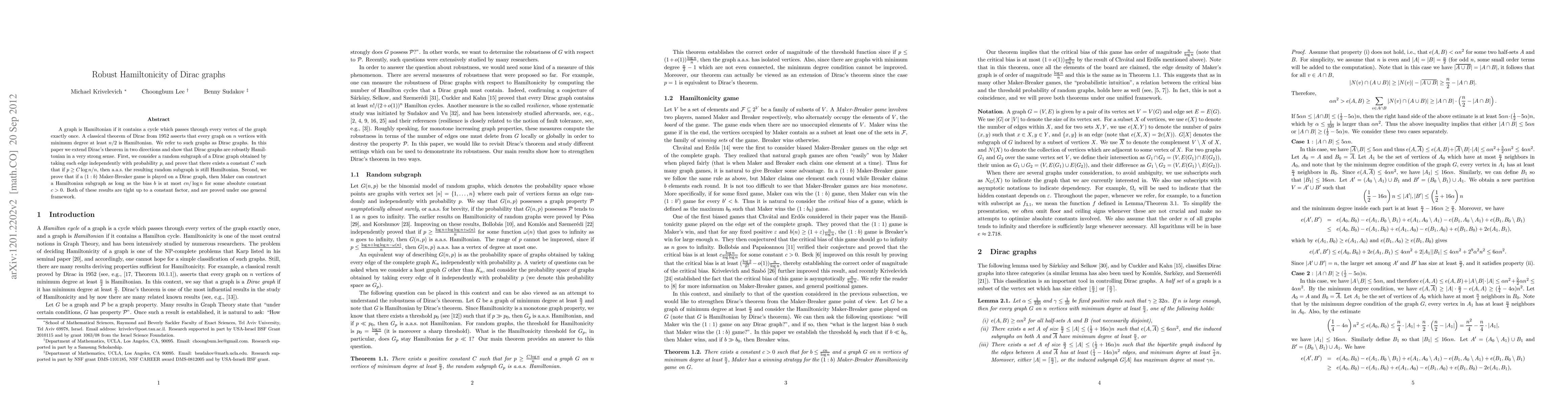 A graph is Hamiltonian if it contains a cycle which passes through every vertex of the graph exactly once. A classical theorem of Dirac from 1952 asserts that every graph on $n$ vertices with minimum degree at least $n/2$ is Hamiltonian. We refer to such graphs as Dirac graphs. In this paper we extend Dirac's theorem in two directions and show that Dirac graphs are robustly Hamiltonian in a very strong sense. First, we consider a random subgraph of a Dirac graph obtained by taking each edge independently with probability $p$, and prove that there exists a constant $C$ such that if $p \ge C \log n / n$, then a.a.s. the resulting random subgraph is still Hamiltonian. Second, we prove that if a $(1:b)$ Maker-Breaker game is played on a Dirac graph, then Maker can construct a Hamiltonian subgraph as long as the bias $b$ is at most $cn /\log n$ for some absolute constant $c > 0$. Both of these results are tight up to a constant factor, and are proved under one general framework.