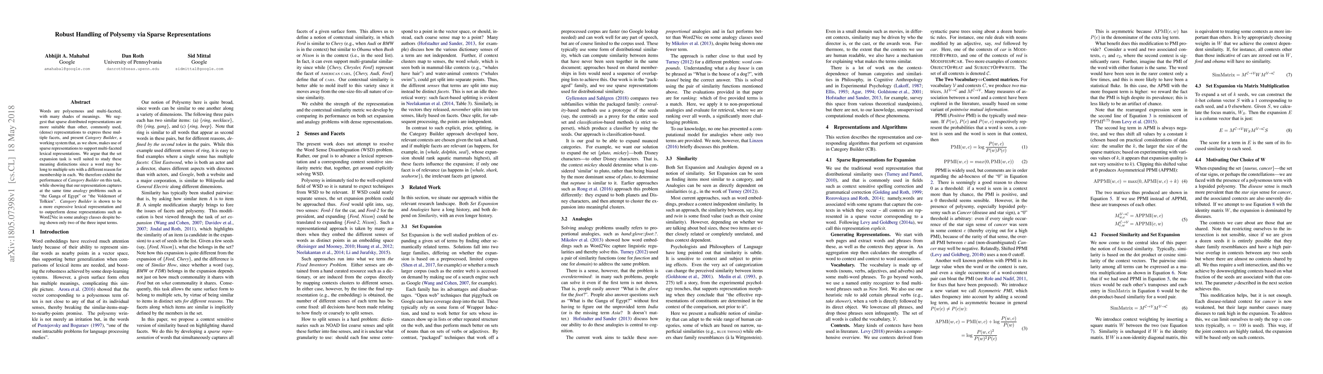 Words are polysemous and multi-faceted, with many shades of meanings. We suggest that sparse distributed representations are more suitable than other, commonly used, (dense) representations to express these multiple facets, and present Category Builder, a working system that, as we show, makes use of sparse representations to support multi-faceted lexical representations. We argue that the set expansion task is well suited to study these meaning distinctions since a word may belong to multiple sets with a different reason for membership in each. We therefore exhibit the performance of Category Builder on this task, while showing that our representation captures at the same time analogy problems such as "the Ganga of Egypt" or "the Voldemort of Tolkien". Category Builder is shown to be a more expressive lexical representation and to outperform dense representations such as Word2Vec in some analogy classes despite being shown only two of the three input terms.