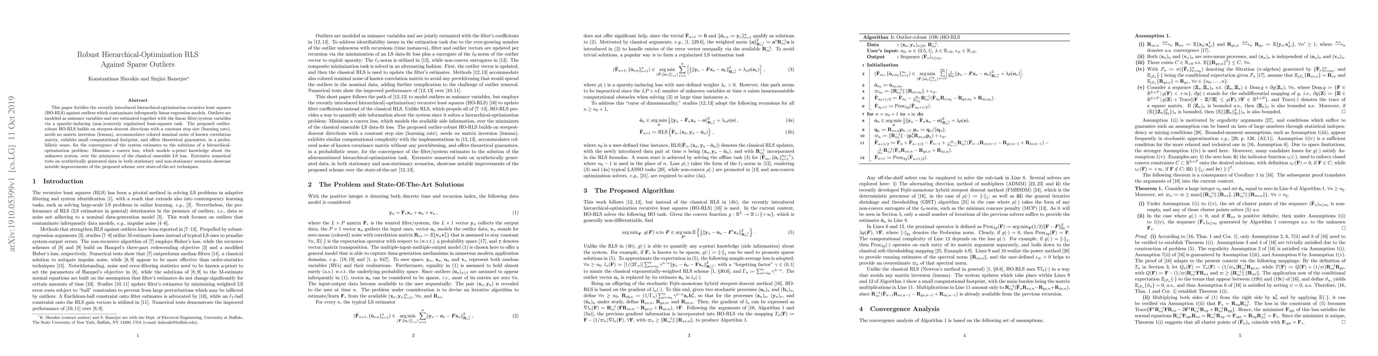 A new algorithm, Hierarchical-Optimization RLS, is proposed to improve robustness against sparse outliers in linear regression models. It offers theoretical guarantees for convergence and outperforms state-of-the-art techniques in numerical tests.