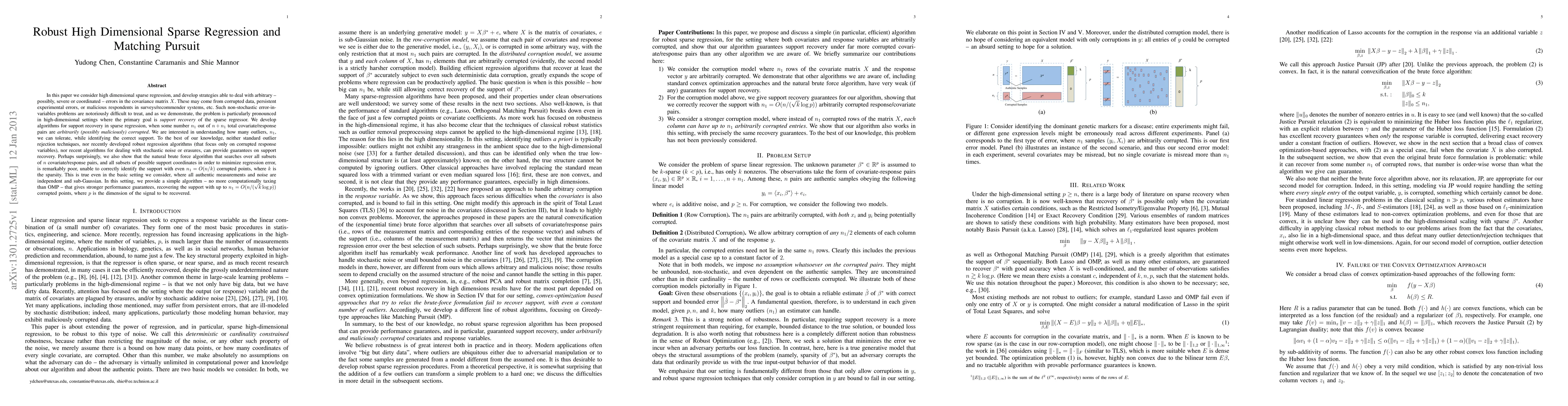 This paper develops robust algorithms for high-dimensional sparse regression in the presence of severe, possibly coordinated errors in the covariance matrix. It demonstrates that brute force methods fail even with few corrupted points, while presenting a new algorithm that outperforms them by recovering the correct support with up to $n_1 = O(n/(\sqrt{k} \log p))$ corrupted covariate/response pairs, where $k$ is the sparsity and $p$ is the signal dimension.