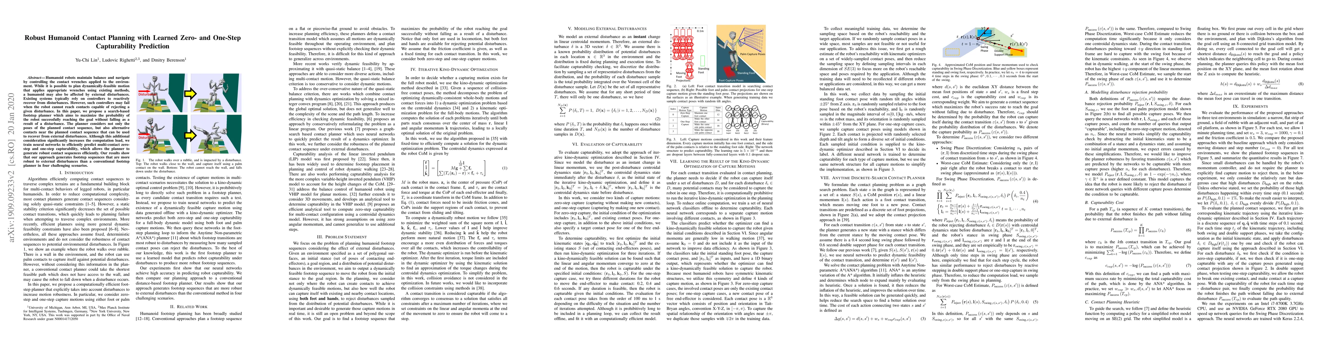 Researchers propose a new approach to planning human-like robot movements that can withstand external disturbances by predicting the likelihood of successful contact sequences. Their method generates more robust footstep plans than existing ones in challenging scenarios.