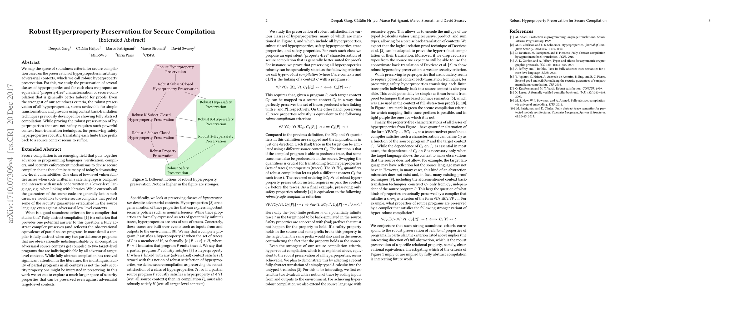 We map the space of soundness criteria for secure compilation based on the preservation of hyperproperties in arbitrary adversarial contexts, which we call robust hyperproperty preservation. For this, we study the preservation of several classes of hyperproperties and for each class we propose an equivalent "property-free" characterization of secure compilation that is generally better tailored for proofs. Even the strongest of our soundness criteria, the robust preservation of all hyperproperties, seems achievable for simple transformations and provable using context back-translation techniques previously developed for showing fully abstract compilation. While proving the robust preservation of hyperproperties that are not safety requires such powerful context back-translation techniques, for preserving safety hyperproperties robustly, translating each finite trace prefix back to a source context seems to suffice.