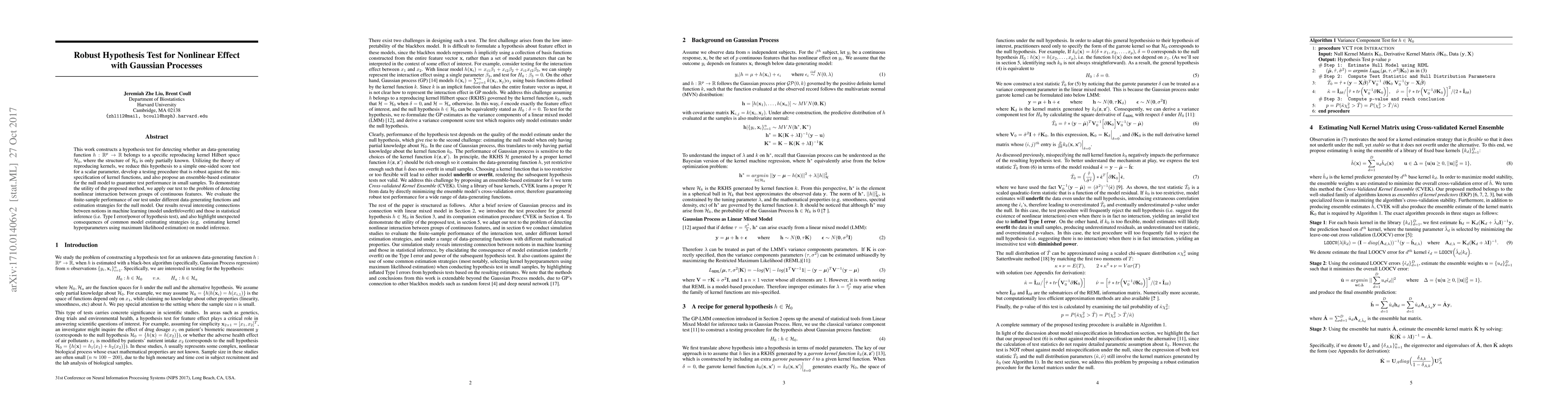 This work constructs a hypothesis test for detecting whether an data-generating function $h: R^p \rightarrow R$ belongs to a specific reproducing kernel Hilbert space $\mathcal{H}_0$ , where the structure of $\mathcal{H}_0$ is only partially known. Utilizing the theory of reproducing kernels, we reduce this hypothesis to a simple one-sided score test for a scalar parameter, develop a testing procedure that is robust against the mis-specification of kernel functions, and also propose an ensemble-based estimator for the null model to guarantee test performance in small samples. To demonstrate the utility of the proposed method, we apply our test to the problem of detecting nonlinear interaction between groups of continuous features. We evaluate the finite-sample performance of our test under different data-generating functions and estimation strategies for the null model. Our results reveal interesting connections between notions in machine learning (model underfit/overfit) and those in statistical inference (i.e. Type I error/power of hypothesis test), and also highlight unexpected consequences of common model estimating strategies (e.g. estimating kernel hyperparameters using maximum likelihood estimation) on model inference.