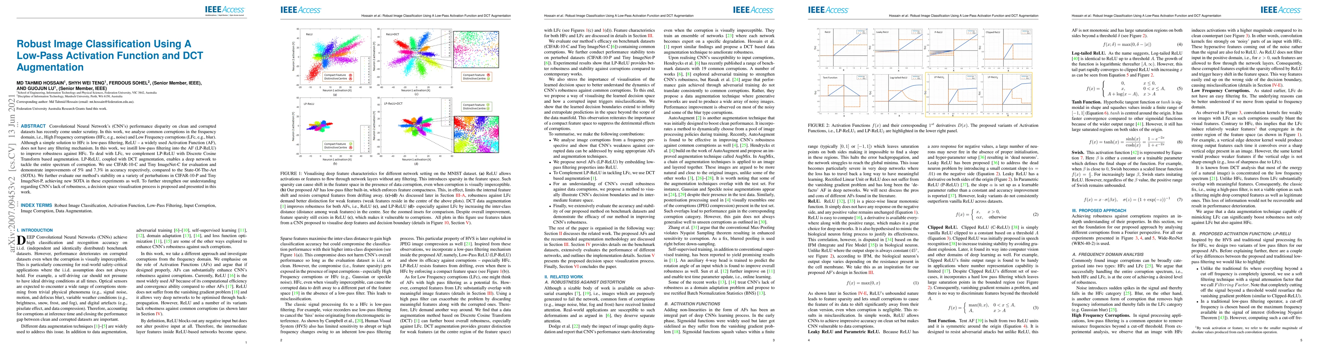 Researchers improve image classification accuracy against corruptions by incorporating a low-pass activation function and Discrete Cosine Transform-based augmentation into Convolutional Neural Networks, achieving state-of-the-art results on corrupted datasets.