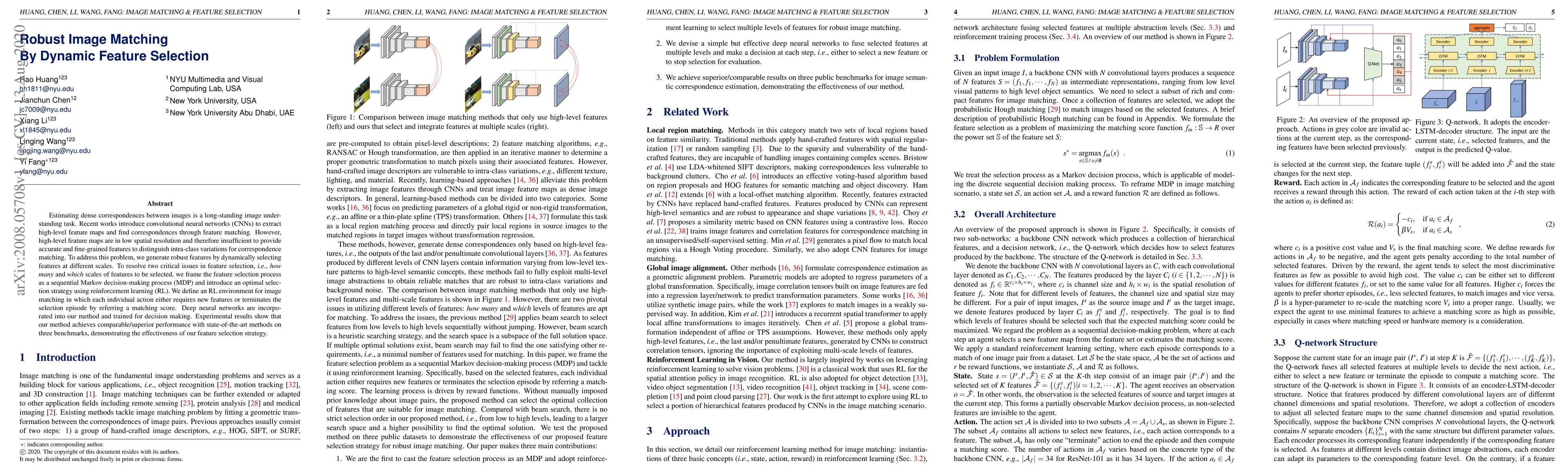 This paper proposes a dynamic feature selection method using reinforcement learning to enhance image matching by selecting optimal features at different scales. The approach frames feature selection as a sequential Markov decision-making process, achieving superior performance on benchmark datasets compared to state-of-the-art methods.