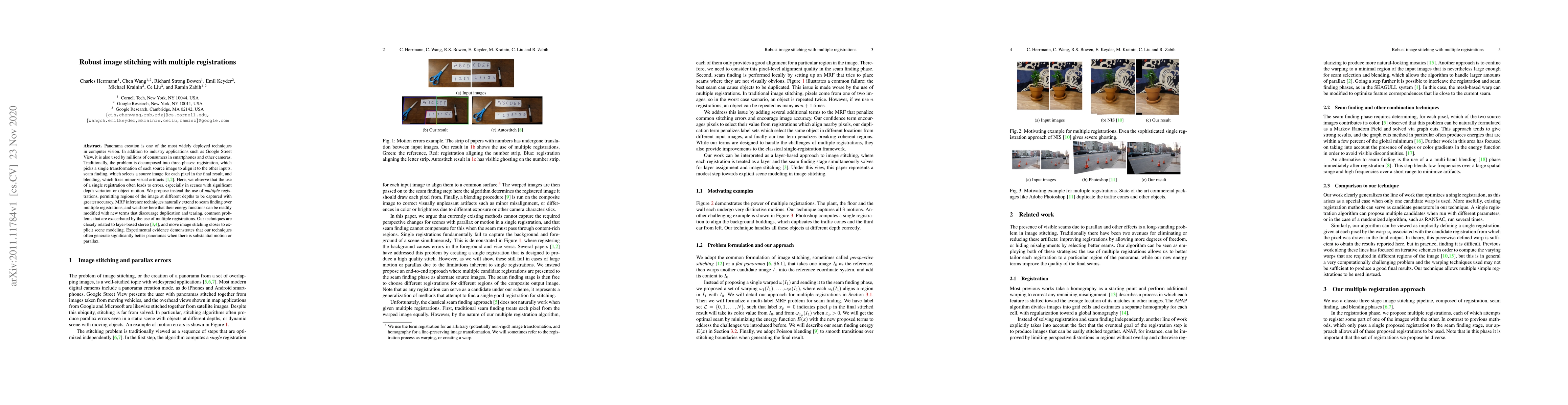 Researchers propose using multiple registrations to improve image stitching, especially in scenes with significant depth variation or object motion, resulting in better panoramas.