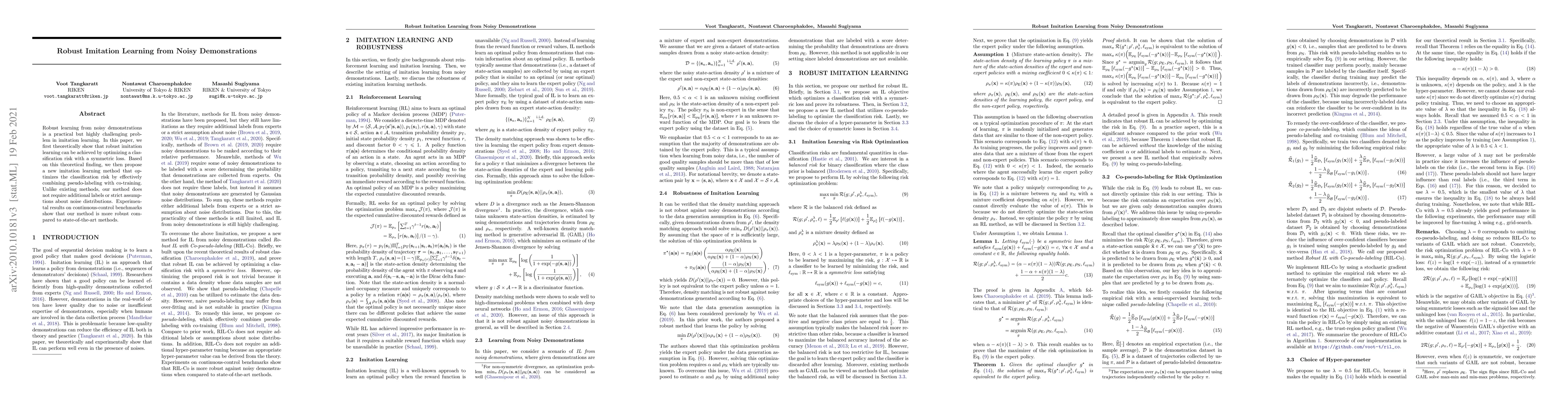 Robust learning from noisy demonstrations is a practical but highly challenging problem in imitation learning. This research addresses this challenge by proposing a new method.
