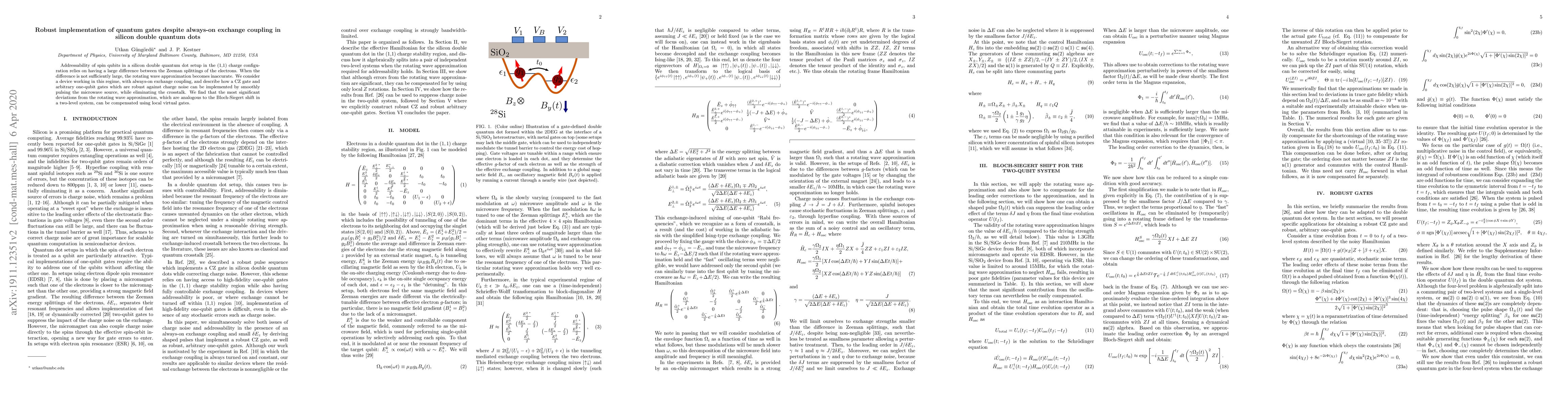 This paper outlines a method for implementing robust quantum gates in silicon double quantum dots despite always-on exchange coupling, by using smooth microwave pulses to mitigate charge noise and crosstalk, and compensate for deviations from the rotating wave approximation with local virtual gates.