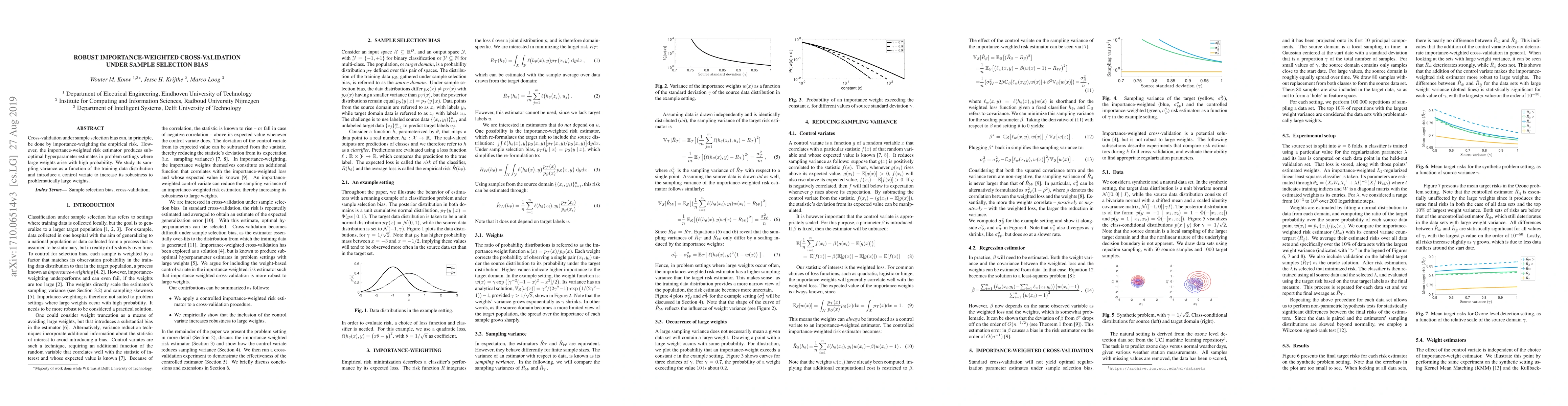 Cross-validation under sample selection bias can, in principle, be done by importance-weighting the empirical risk. However, the importance-weighted risk estimator produces sub-optimal hyperparameter estimates in problem settings where large weights arise with high probability. We study its sampling variance as a function of the training data distribution and introduce a control variate to increase its robustness to problematically large weights.