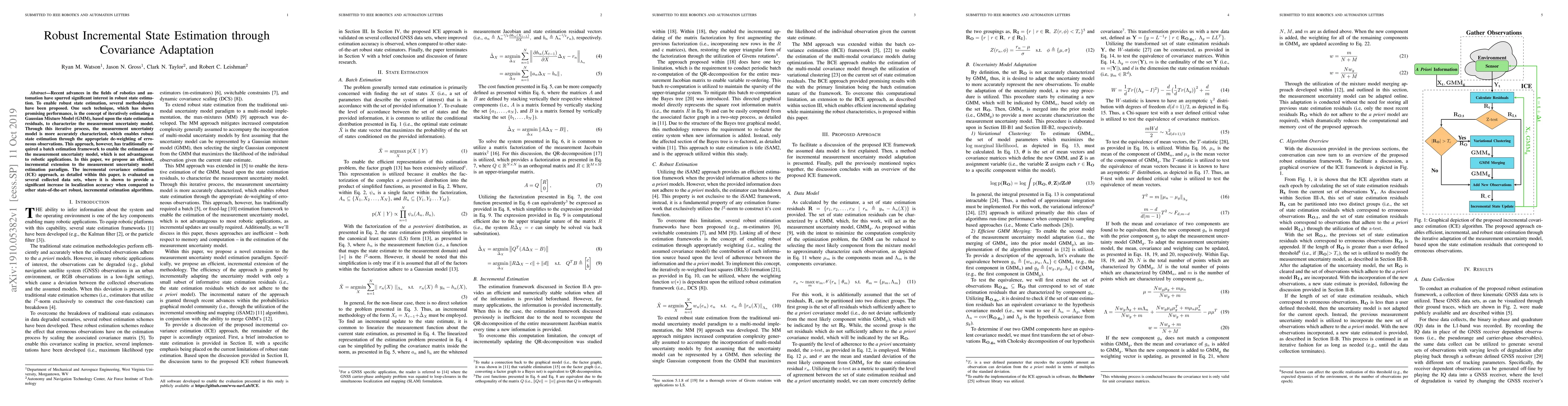 This paper proposes an incremental covariance estimation (ICE) approach for robust state estimation in robotics, enhancing the iterative Gaussian Mixture Model (GMM) estimation to adapt measurement uncertainty models in real-time. The ICE method significantly improves localization accuracy compared to other incremental estimation algorithms.