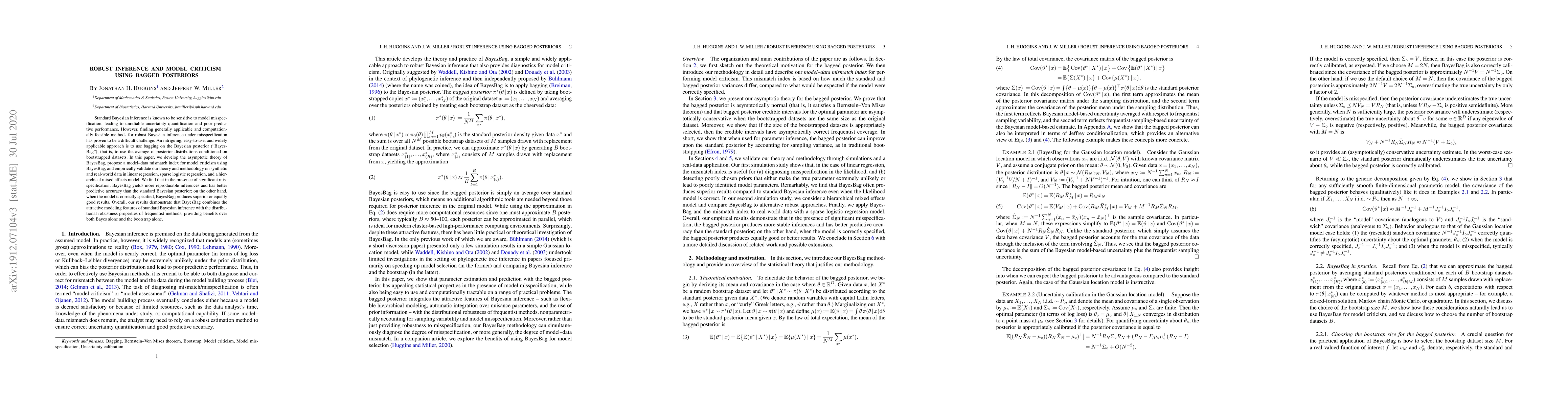 This paper develops the asymptotic theory of "BayesBag," a method that uses bagging on Bayesian posteriors to achieve robust inference under model misspecification. It proposes a model-data mismatch index for criticism and shows through empirical validation that BayesBag offers more reproducible and accurate predictions compared to standard Bayesian methods, especially when models are misspecified.