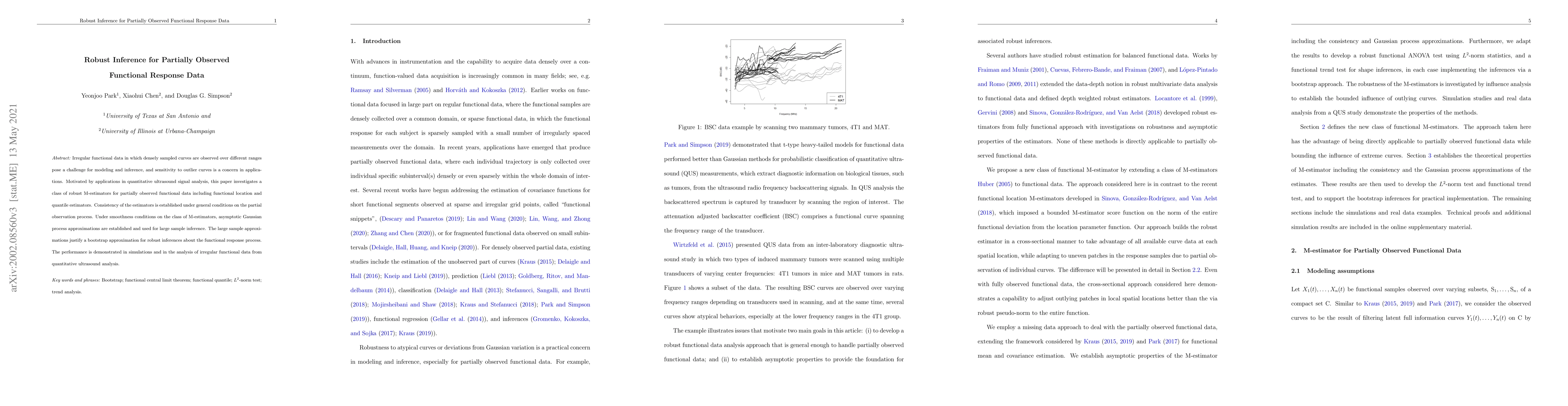 This paper develops robust M-estimators for partially observed functional data, addressing challenges in modeling and inference due to irregular sampling and sensitivity to outliers. It establishes consistency and asymptotic normality, and demonstrates performance through simulations and ultrasound signal analysis.