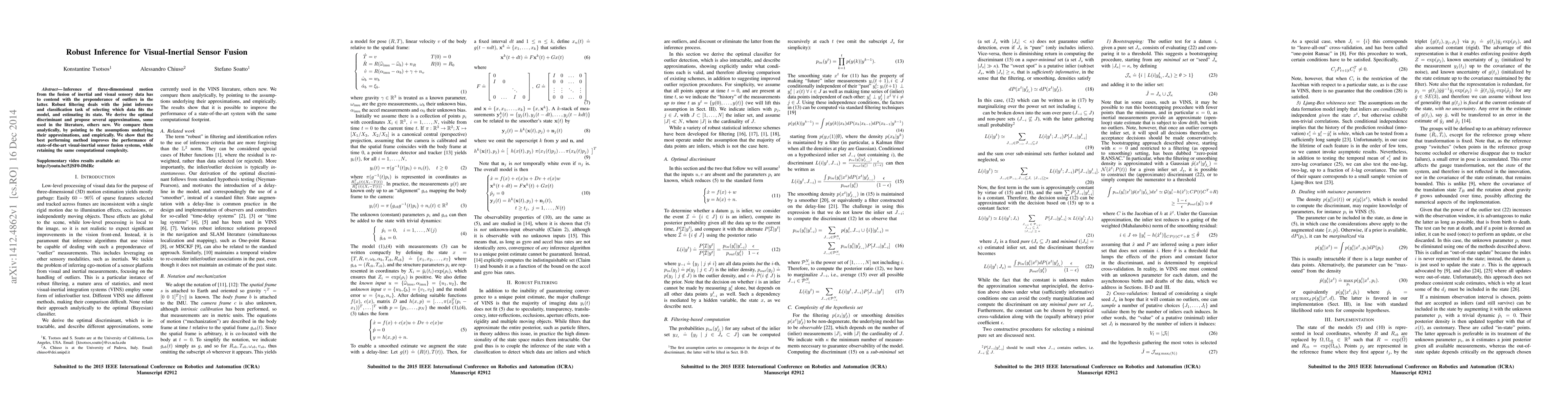 Inference of three-dimensional motion from the fusion of inertial and visual sensory data has to contend with the preponderance of outliers in the latter. Robust filtering deals with the joint inference and classification task of selecting which data fits the model, and estimating its state. We derive the optimal discriminant and propose several approximations, some used in the literature, others new. We compare them analytically, by pointing to the assumptions underlying their approximations, and empirically. We show that the best performing method improves the performance of state-of-the-art visual-inertial sensor fusion systems, while retaining the same computational complexity.
