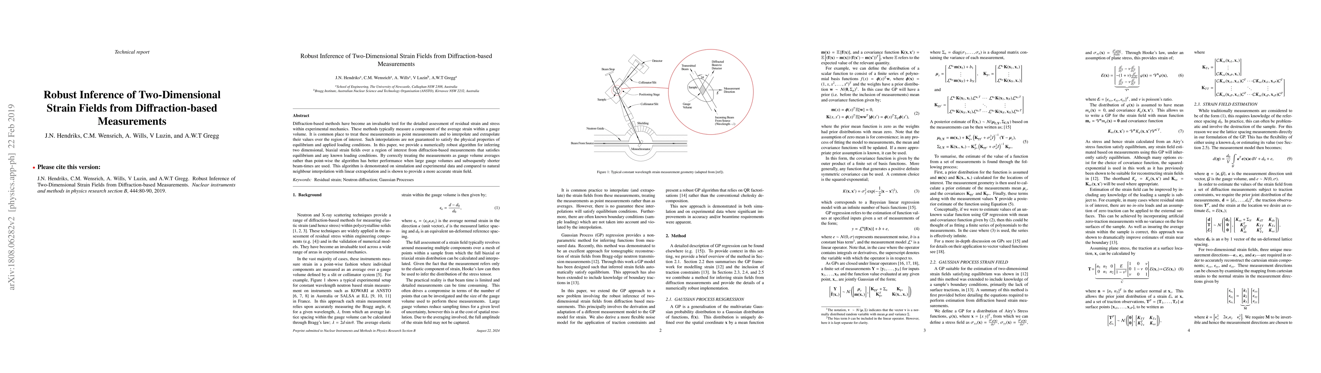 Diffraction-based methods have become an invaluable tool for the detailed assessment of residual strain and stress within experimental mechanics. These methods typically measure a component of the average strain within a gauge volume. It is common place to treat these measurements as point measurements and to interpolate and extrapolate their values over the region of interest. Such interpolations are not guaranteed to satisfy the physical properties of equilibrium and applied loading conditions. In this paper, we provide a numerically robust algorithm for inferring two dimensional, biaxial strain fields over a region of interest from diffraction-based measurements that satisfies equilibrium and any known loading conditions. By correctly treating the measurements as gauge volume averages rather than point-wise the algorithm has better performance when large gauge volumes and subsequently shorter beam-times are used. This algorithm is demonstrated on simulation and experimental data and compared to natural neighbour interpolation with linear extrapolation and is shown to provide a more accurate strain field.