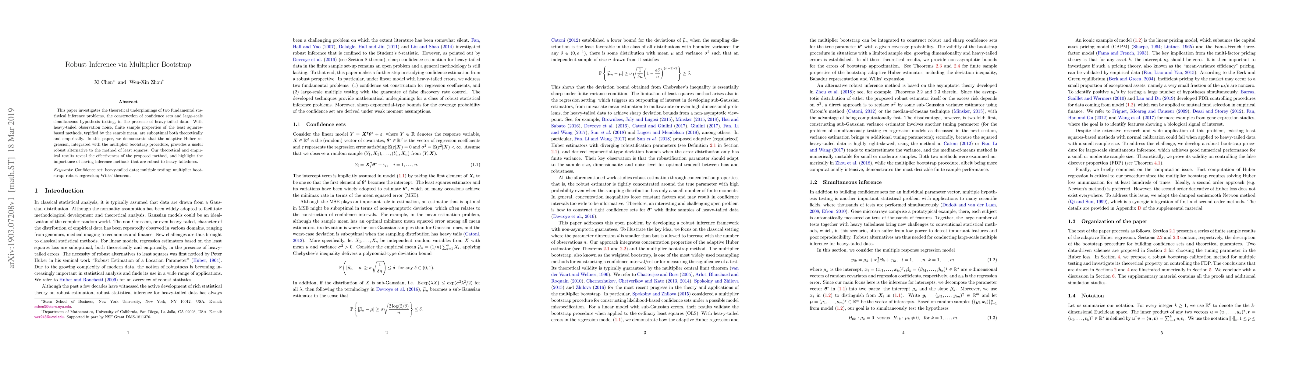 This paper proposes an adaptive Huber regression combined with the multiplier bootstrap to construct robust confidence sets and perform large-scale simultaneous hypothesis testing for heavy-tailed data, demonstrating its effectiveness over traditional least squares methods. The study underscores the necessity of robust inference techniques in the presence of heavy-tailed distributions.