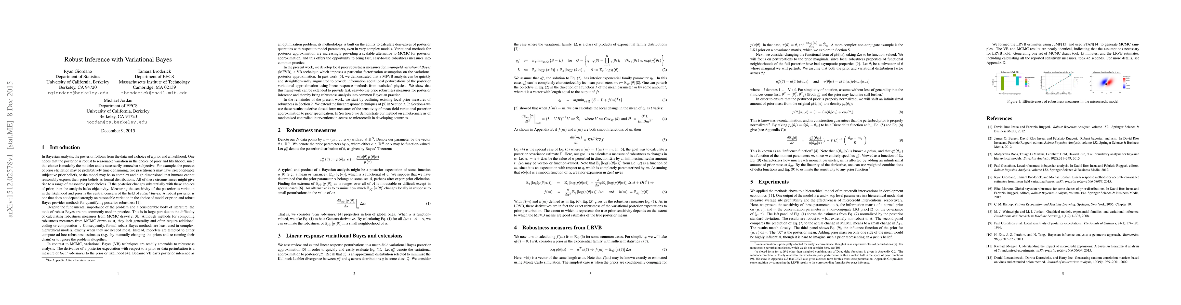 The novelty of this work lies in its application of variational Bayes techniques to robust Bayesian inference, simplifying the process and reducing computational burden compared to MCMC-based methods.