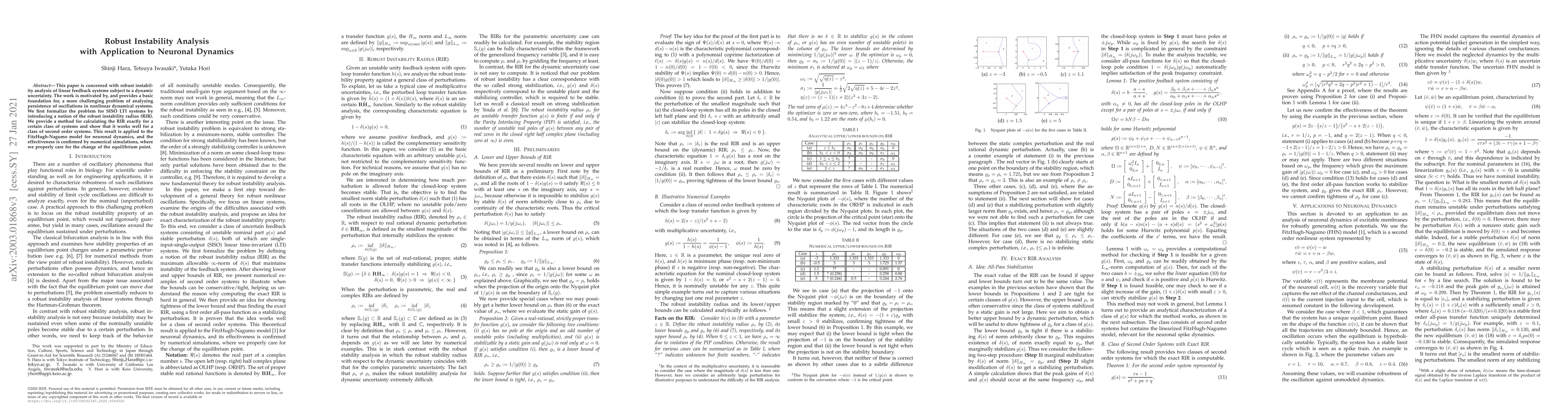 This paper is concerned with robust instability analysis of linear feedback systems subject to a dynamic uncertainty. The work is motivated by, and provides a basic foundation for, a more challenging problem of analyzing persistence of oscillations in nonlinear dynamical systems. We first formalize the problem for SISO LTI systems by introducing a notion of the robust instability radius (RIR). We provide a method for calculating the RIR exactly for a certain class of systems and show that it works well for a class of second order systems. This result is applied to the FitzHugh-Nagumo model for neuronal dynamics, and the effectiveness is confirmed by numerical simulations, where we properly care for the change of the equilibrium point.
