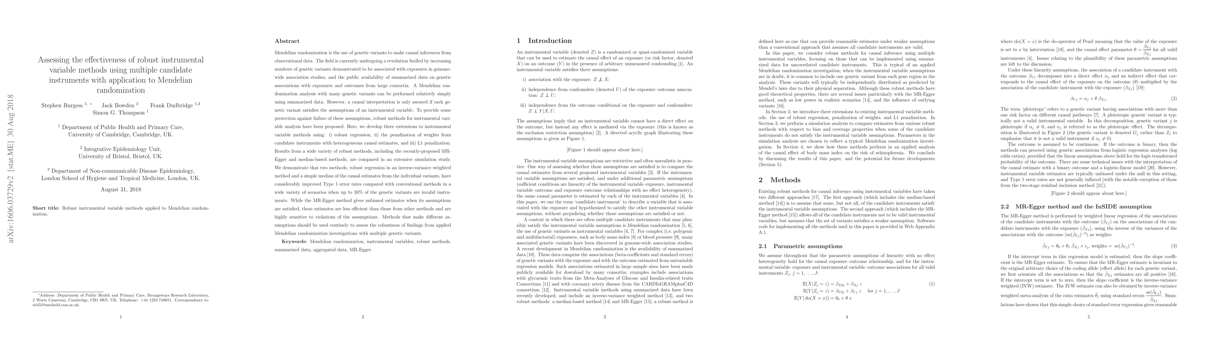 This paper develops robust instrumental variable methods for Mendelian randomization using multiple genetic variants, comparing various approaches in simulations. It finds that robust regression and median-based methods show improved Type 1 error control when a significant proportion of genetic variants are invalid instruments, while MR-Egger is less efficient and sensitive to assumption violations.