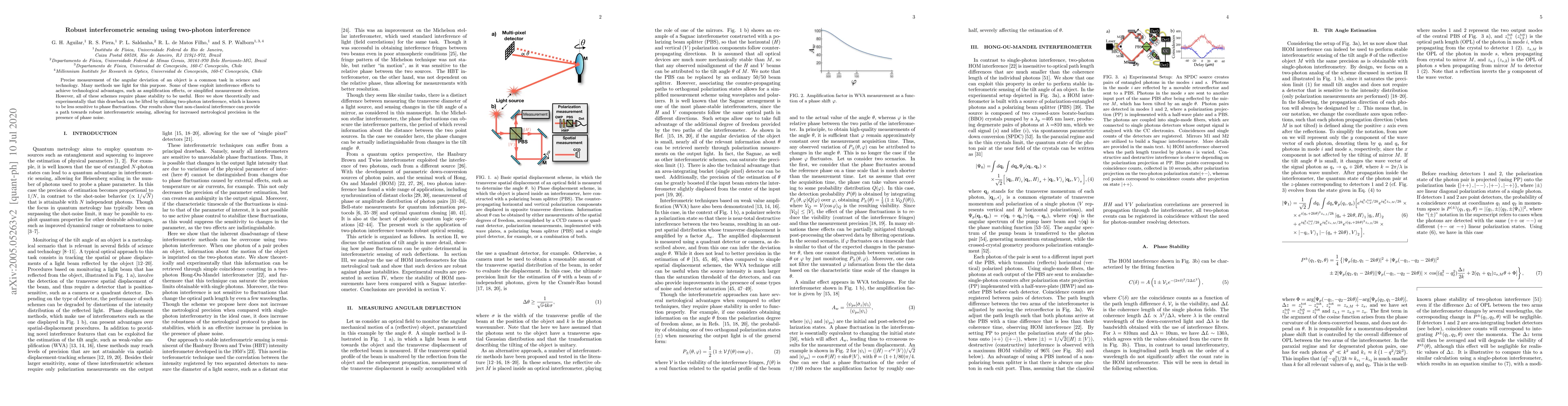 Precise measurement of the angular deviation of an object is a common task in science and technology. Many methods use light for this purpose. Some of these exploit interference effects to achieve technological advantages, such as amplification effects, or simplified measurement devices. However, all of these schemes require phase stability to be useful. Here we show theoretically and experimentally that this drawback can be lifted by utilizing two-photon interference, which is known to be less sensitive to phase fluctuations. Our results show that non-classical interference can provide a path towards robust interferometric sensing, allowing for increased metrological precision in the presence of phase noise.