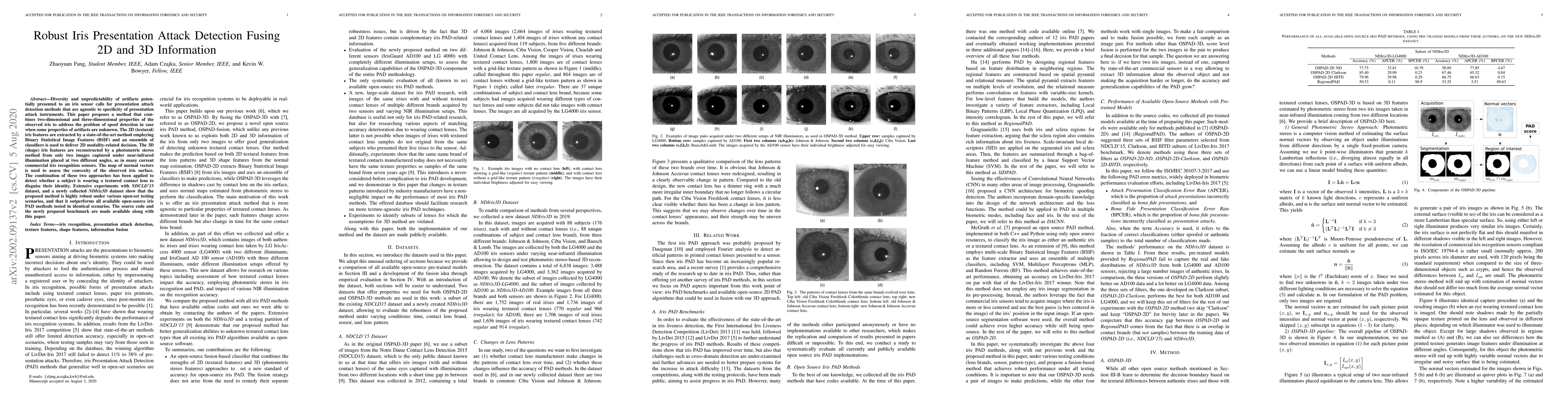 This paper presents a robust method for iris presentation attack detection by fusing 2D and 3D iris features, showing superior performance over existing open-source methods in detecting disguised identities using textured contact lenses. The approach combines state-of-the-art 2D textural features and 3D shape features reconstructed via photometric stereo, validated on NDCLD'15 and NDIris3D datasets.