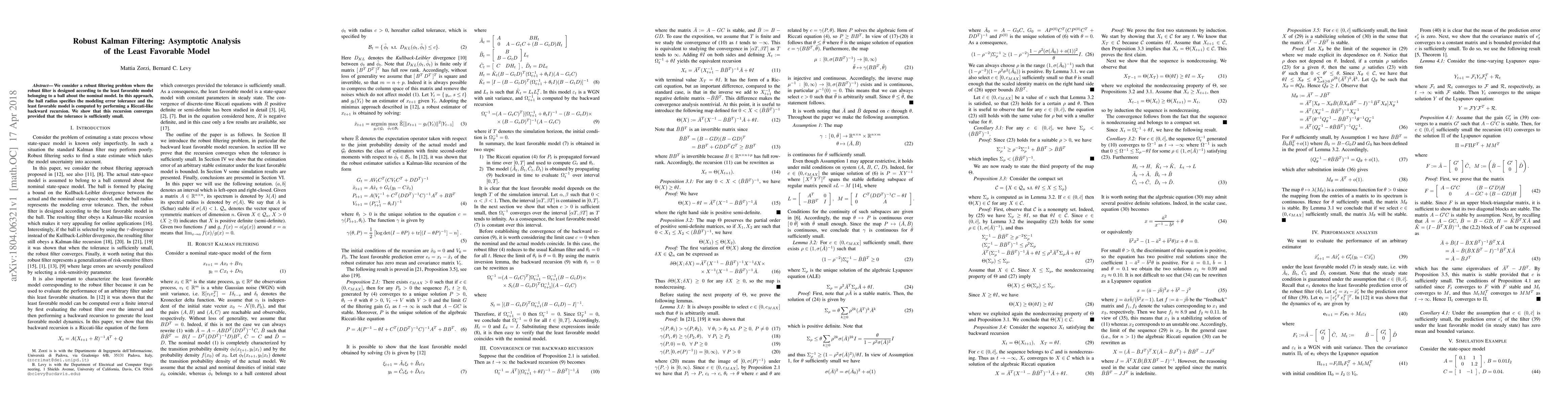We consider a robust filtering problem where the robust filter is designed according to the least favorable model belonging to a ball about the nominal model. In this approach, the ball radius specifies the modeling error tolerance and the least favorable model is computed by performing a Riccati-like backward recursion. We show that this recursion converges provided that the tolerance is sufficiently small.