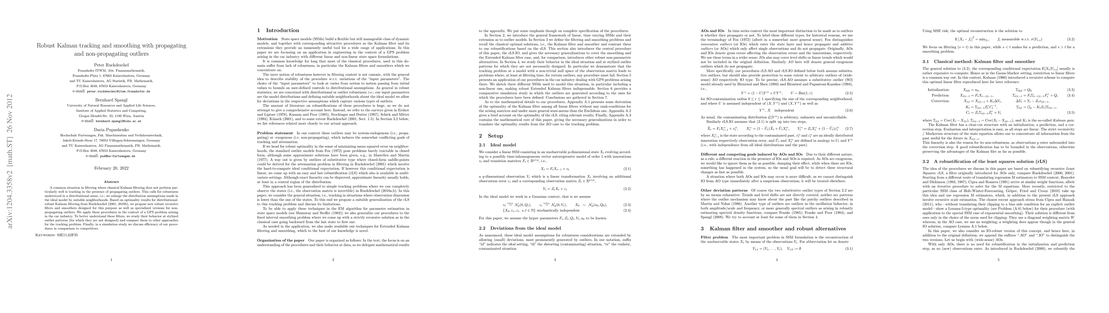 A common situation in filtering where classical Kalman filtering does not perform particularly well is tracking in the presence of propagating outliers. This calls for robustness understood in a distributional sense, i.e.; we enlarge the distribution assumptions made in the ideal model by suitable neighborhoods. Based on optimality results for distributional-robust Kalman filtering from Ruckdeschel[01,10], we propose new robust recursive filters and smoothers designed for this purpose as well as specialized versions for non-propagating outliers. We apply these procedures in the context of a GPS problem arising in the car industry. To better understand these filters, we study their behavior at stylized outlier patterns (for which they are not designed) and compare them to other approaches for the tracking problem. Finally, in a simulation study we discuss efficiency of our procedures in comparison to competitors.