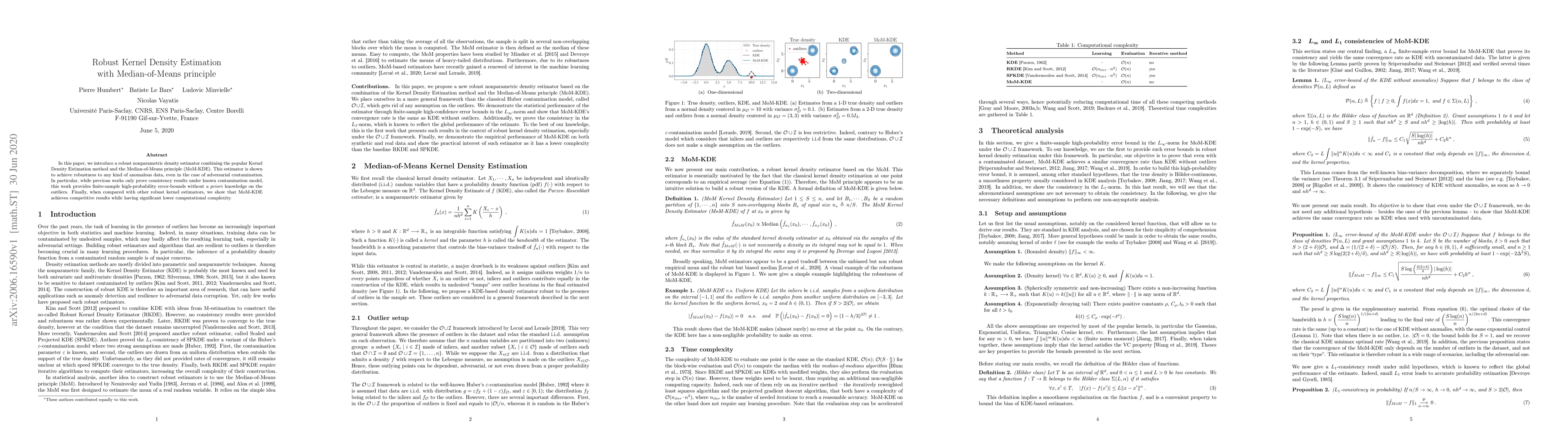 This paper presents a robust kernel density estimator combining Kernel Density Estimation with the Median-of-Means principle, achieving high-probability error-bounds in finite samples without prior knowledge of outliers, and demonstrating competitive performance with lower computational complexity compared to other methods.