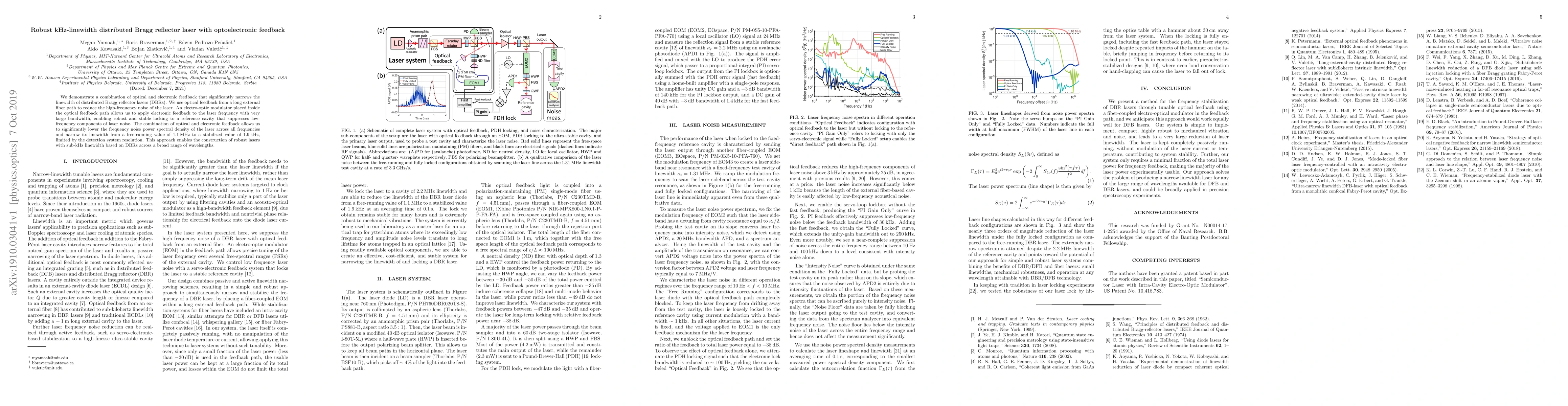 This paper demonstrates a robust kHz-linewidth distributed Bragg reflector laser by combining optical feedback from an external fiber path and electronic feedback via an electro-optic modulator, achieving a linewidth reduction from 1.1 MHz to 1.9 kHz, enabling stable and low-noise laser operation across various wavelengths.