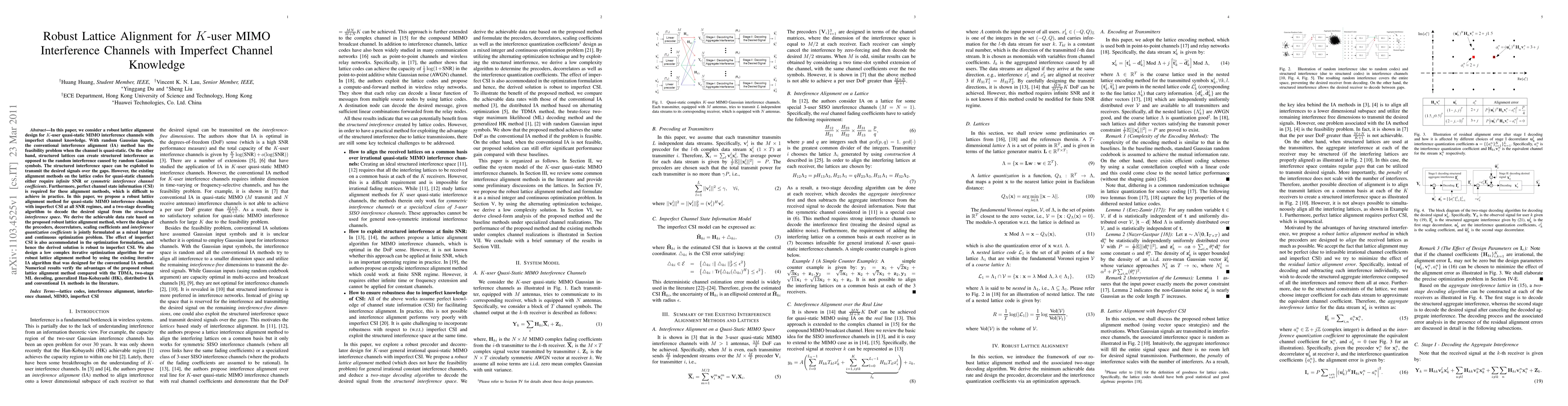 This paper proposes a robust lattice alignment method for K-user MIMO interference channels with imperfect channel knowledge, addressing the feasibility issues of conventional interference alignment in quasi-static channels. It introduces a two-stage decoding algorithm and an optimization problem for precoders and scaling coefficients, ensuring robustness against imperfect channel state information and achieving data rate optimization.