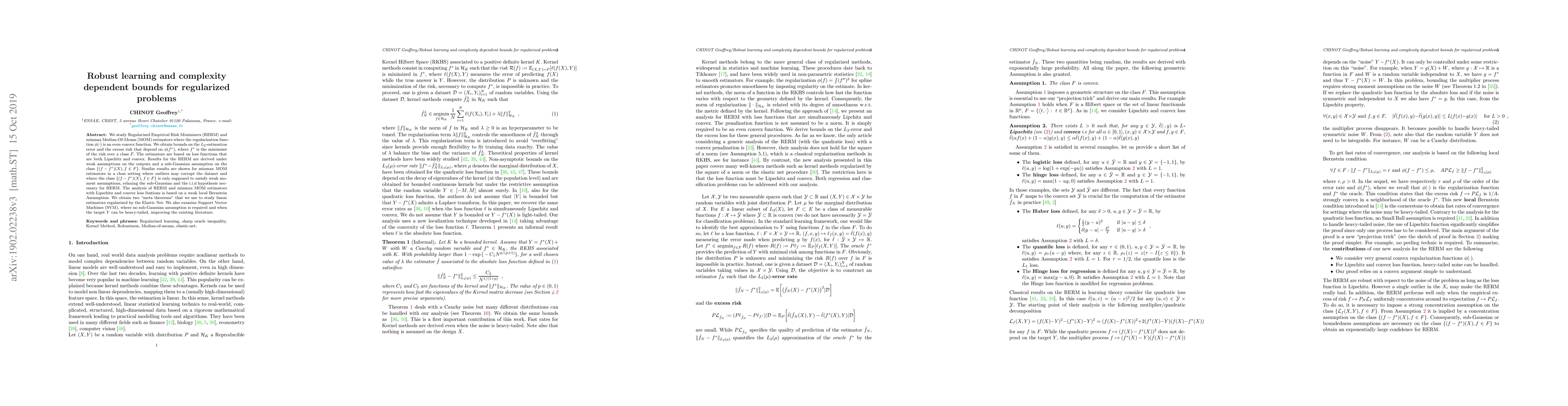 We study Regularized Empirical Risk Minimizers (RERM) and minmax Median-Of-Means (MOM) estimators where the regularization function $\phi(\cdot)$ is an even convex function. We obtain bounds on the $L_2$-estimation error and the excess risk that depend on $\phi(f^*)$, where $f^*$ is the minimizer of the risk over a class $F$. The estimators are based on loss functions that are both Lipschitz and convex. Results for the RERM are derived under weak assumptions on the outputs and a sub-Gaussian assumption on the class $\{ (f-f^*)(X), f \in F \}$. Similar results are shown for minmax MOM estimators in a close setting where outliers may corrupt the dataset and where the class $\{ (f-f^*)(X), f \in F \}$ is only supposed to satisfy weak moment assumptions, relaxing the sub-Gaussian and the i.i.d hypothesis necessary for RERM. The analysis of RERM and minmax MOM estimators with Lipschitz and convex loss funtions is based on a weak local Bernstein Assumption. We obtain two "meta theorems" that we use to study linear estimators regularized by the Elastic Net. We also examine Support Vector Machines (SVM), where no sub-Gaussian assumption is required and when the target $Y$ can be heavy-tailed, improving the existing literature.