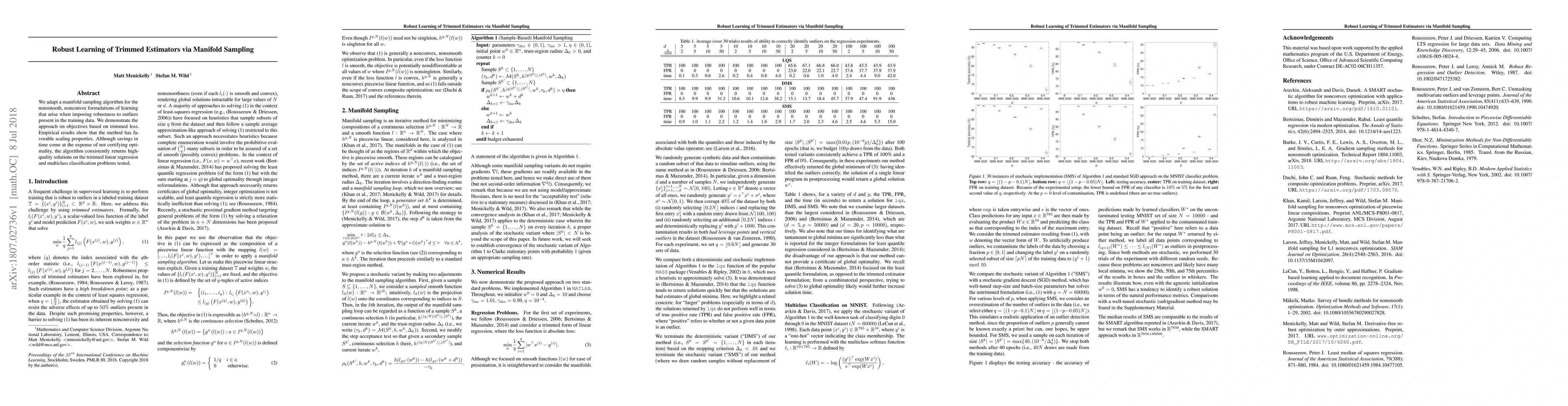 Researchers developed a method to learn robust estimators using manifold sampling for trimmed loss functions, achieving high-quality solutions with favorable scaling properties.
