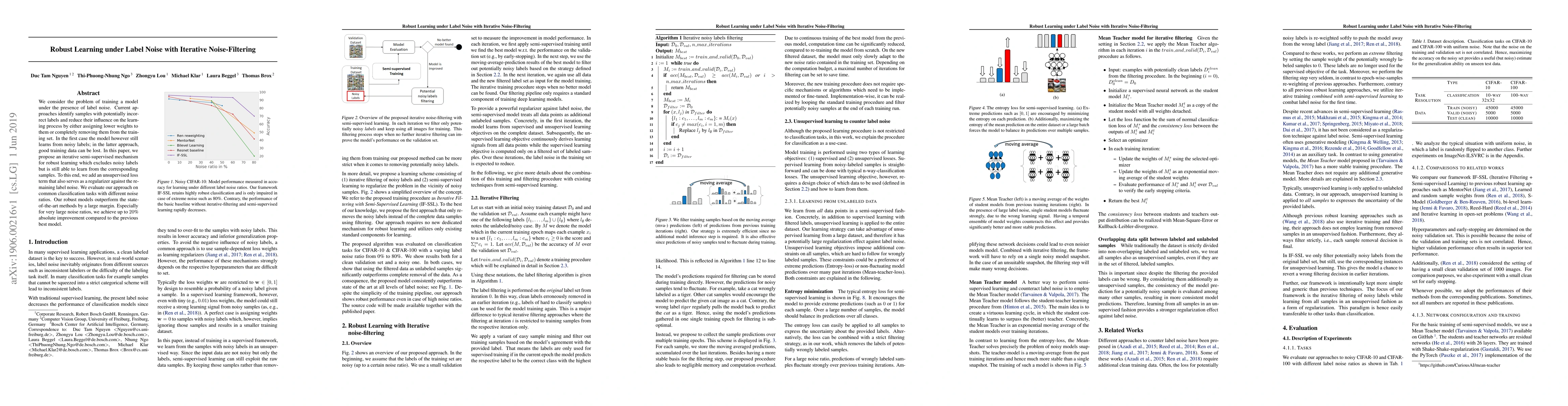 This paper proposes an iterative semi-supervised learning method to robustly train models under label noise by filtering out noisy labels while still leveraging corresponding unlabeled samples. The approach adds an unsupervised loss term to regularize against remaining noise, achieving significant improvements over state-of-the-art methods, especially in high noise conditions.