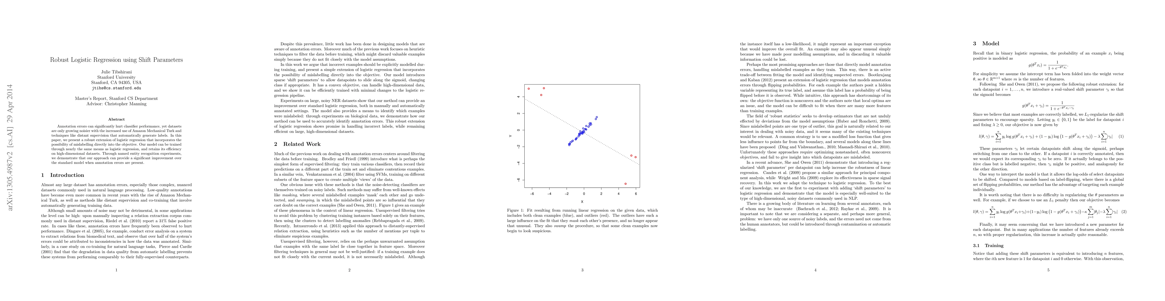 Annotation errors can significantly hurt classifier performance, yet datasets are only growing noisier with the increased use of Amazon Mechanical Turk and techniques like distant supervision that automatically generate labels. In this paper, we present a robust extension of logistic regression that incorporates the possibility of mislabelling directly into the objective. Our model can be trained through nearly the same means as logistic regression, and retains its efficiency on high-dimensional datasets. Through named entity recognition experiments, we demonstrate that our approach can provide a significant improvement over the standard model when annotation errors are present.