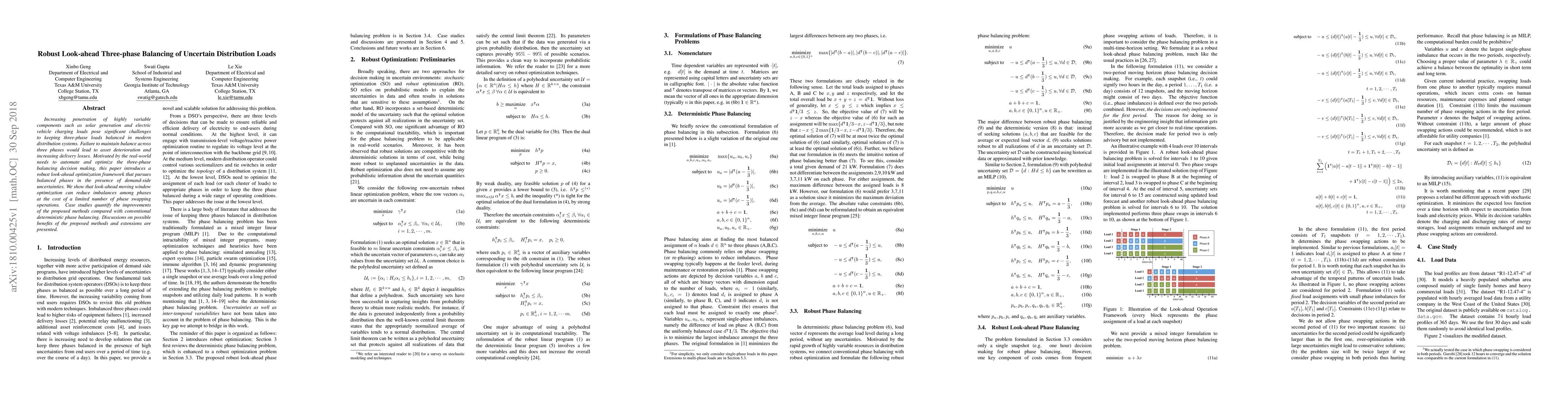 Increasing penetration of highly variable components such as solar generation and electric vehicle charging loads pose significant challenges to keeping three-phase loads balanced in modern distribution systems. Failure to maintain balance across three phases would lead to asset deterioration and increasing delivery losses. Motivated by the real-world needs to automate and optimize the three-phase balancing decision making, this paper introduces a robust look-ahead optimization framework that pursues balanced phases in the presence of demand-side uncertainties. We show that look-ahead moving window optimization can reduce imbalances among phases at the cost of a limited number of phase swapping operations. Case studies quantify the improvements of the proposed methods compared with conventional deterministic phase balancing. Discussions on possible benefits of the proposed methods and extensions are presented.